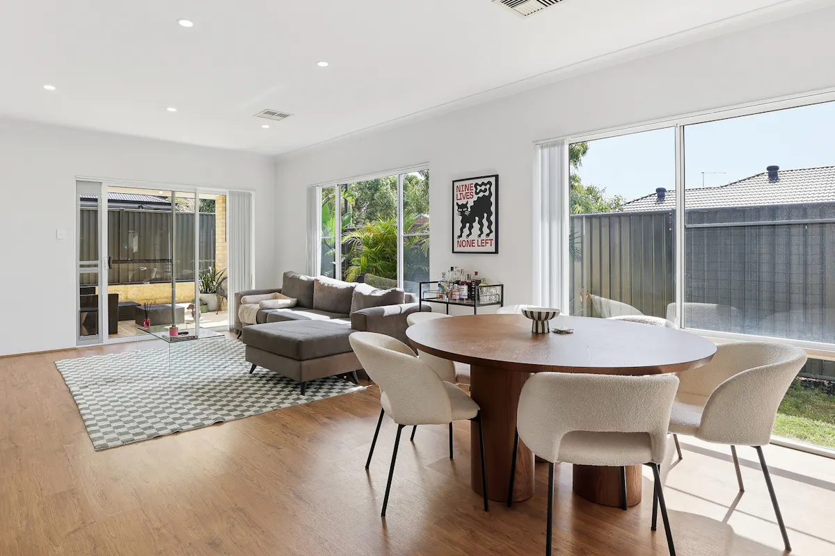 From the moment you arrive, the home impresses with its neat presentation and added security features including roller shutters to the front windows. Inside, a fresh, neutral colour palette and wood-look flooring through the main living areas and master bedroom create a warm and contemporary feel.