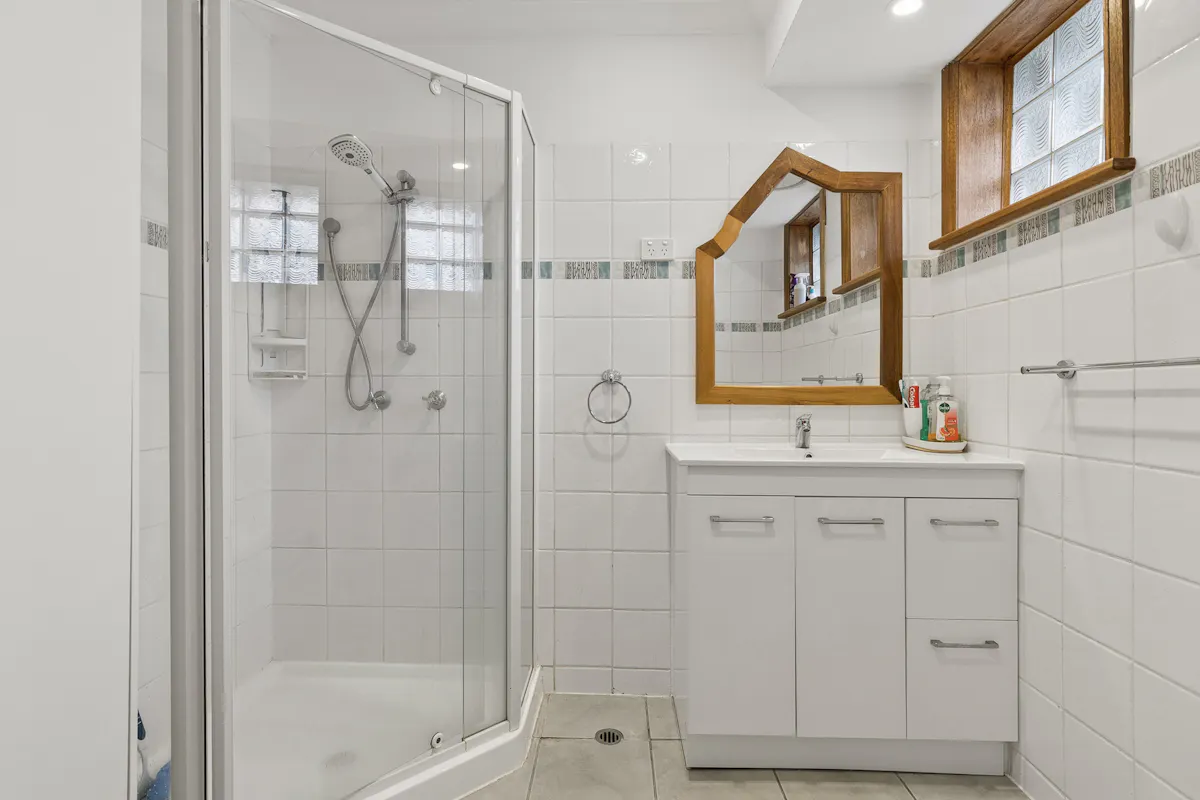 • Main bathroom with shower and feature glass block windows